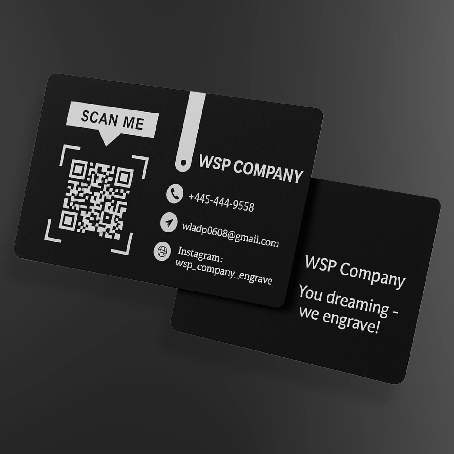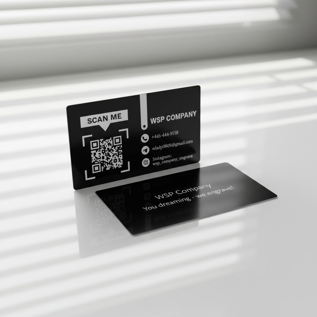 Black Gloss Engraved Business Cards – Custom Design – 100 pack